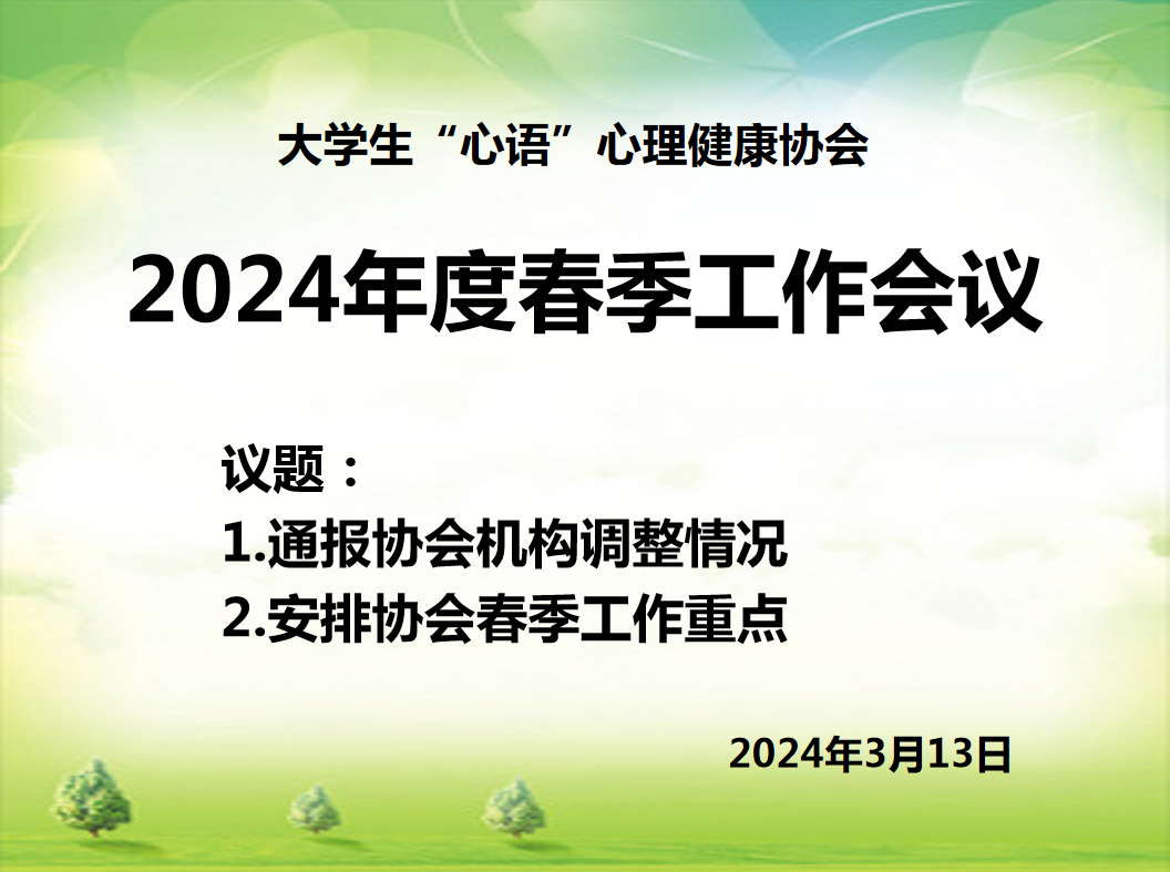 3月13日上午,大学生“心语”心理健康协会在团体活动室开展了2024年春季工作会议。