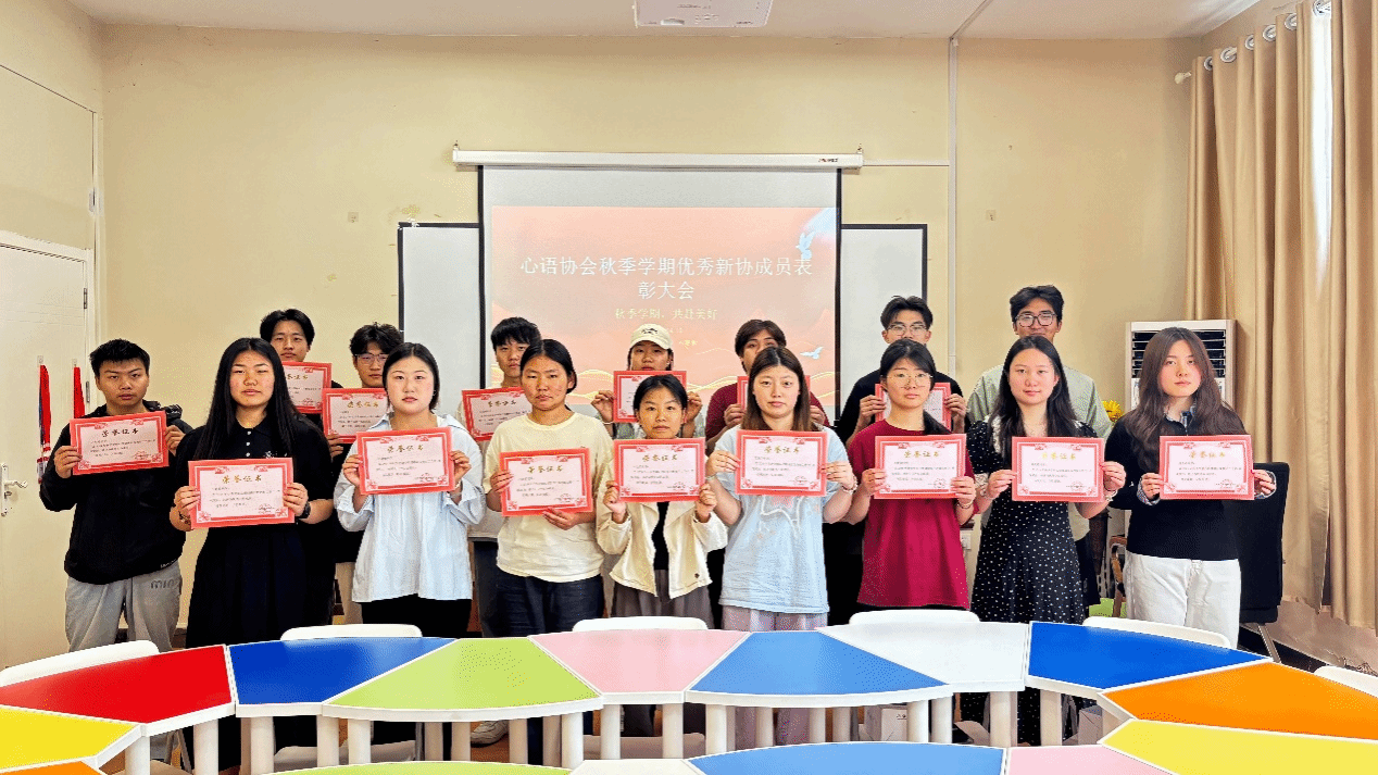 4月10日,2024年秋季学期“心语”协会优秀成员表彰会议在心理健康教育中心团体活动室举行。本次表彰的是在过去一学期里为校园心理健康工作做出突出贡献的协会成员不仅是对优秀成员个人努力的肯定,更是对“心语”协会在促进大学生心理健康方面所做工作的一次全面回顾与展望。
