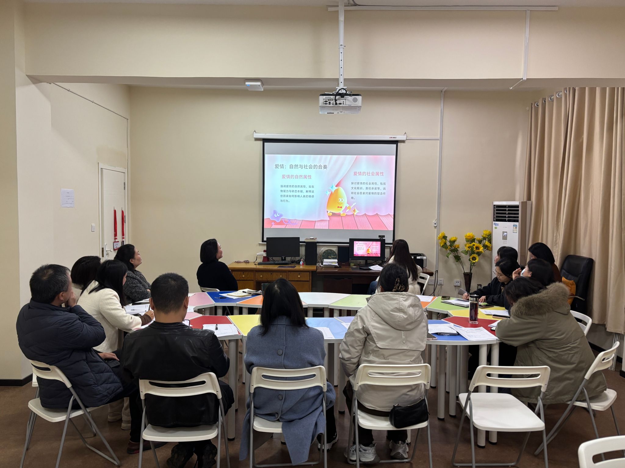 11月份教学内容串讲环节,各位教师依次展示教学成果。常经营老师针对专题五《情绪管理》进行串讲,其课件涵盖多版本教材理论要点、心理实验、课堂活动等丰富素材,为教学实施提供了全面支撑;郝梅院长以课堂调查为切入点,讲解专题六《人际交往》,内容贴合学生实际需求,配套的课堂活动与小视频资源让教学更具吸引力;刘嘉、李姝仪两位老师共同负责专题七《恋爱心理》串讲,精美课件搭配新颖内容,从国家政策、马克思爱情观延伸至恋爱理论、冲突处理等方面,自然融入课程思政元素,深受参会教师好评