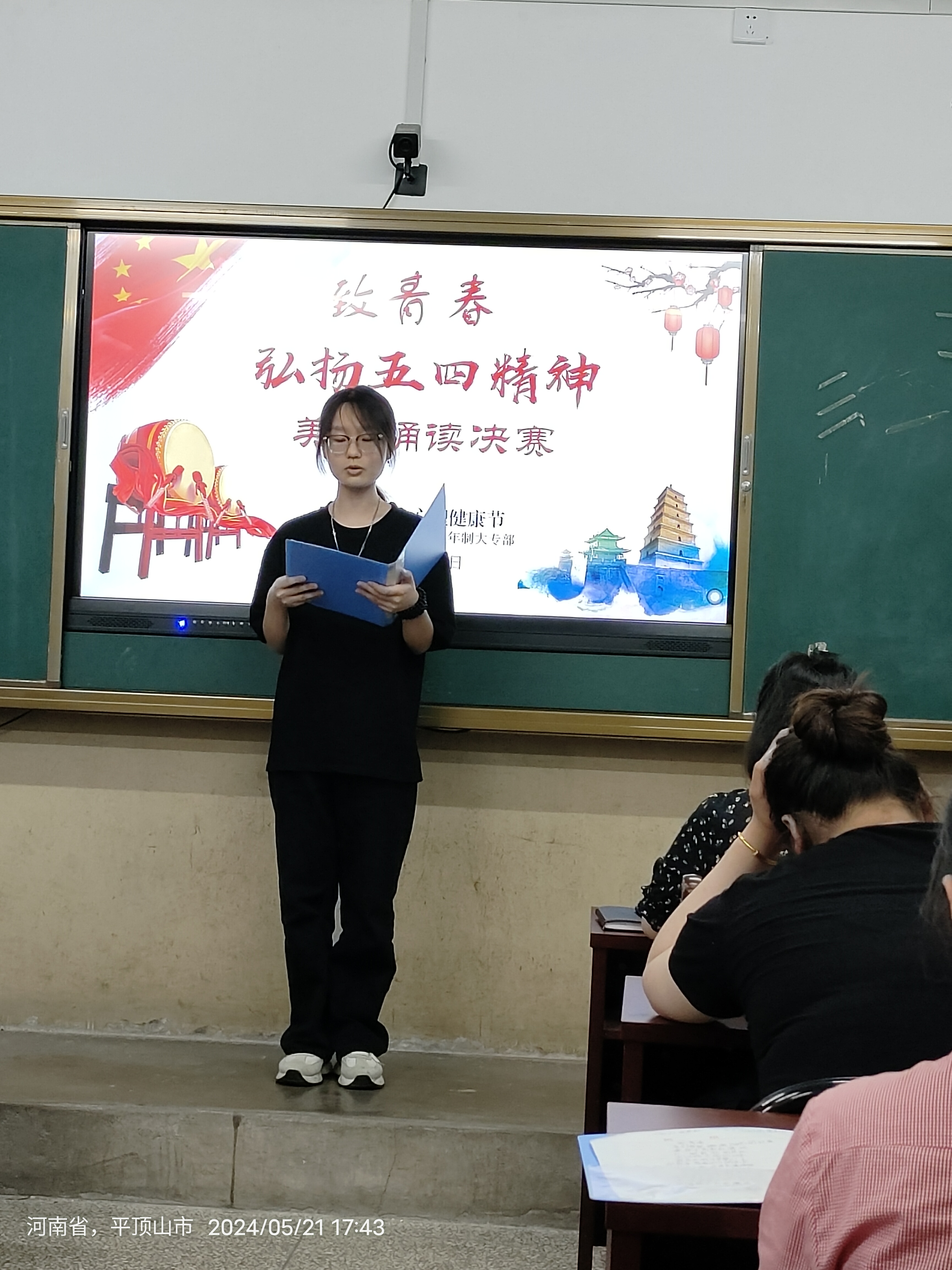 本次比赛分设校本部主赛区和舞钢分赛区,共有34学生参与。参赛者以饱满的热情和真挚的情感,诵读了一篇篇关于青春的经典美文。他们的声音或激昂澎湃,或婉转悠扬,将青春的迷茫与思考、活力与梦想展现得淋漓尽致。