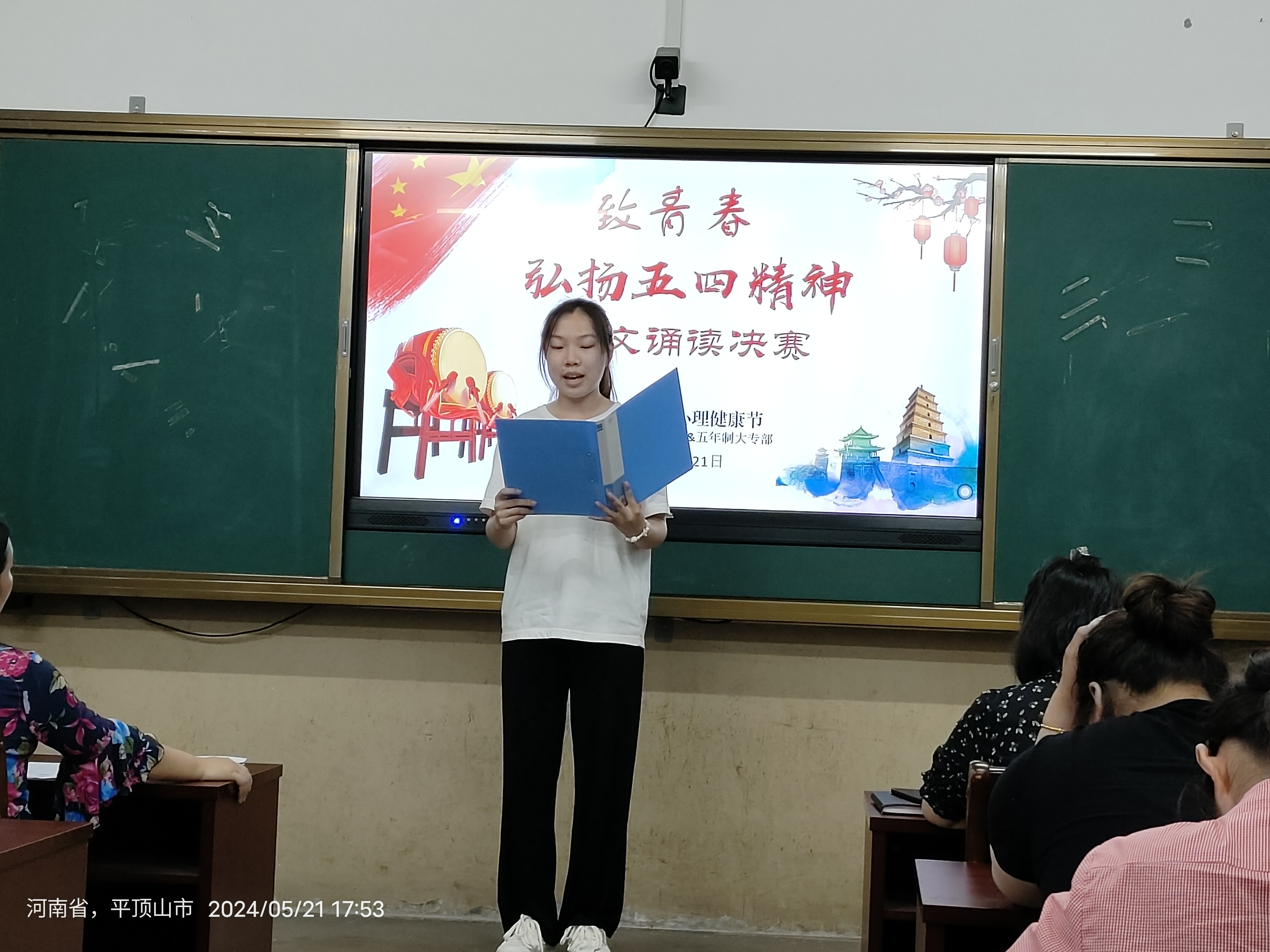 为了进一步推进大学生心理健康教育工作,提升心理育人水平,培育积极向上的心理品质,营造健康和谐的校园文化氛围,5月21日下午,由大学生心理健康教育中心主办、五年制大专部承办的“5•25大学生心理健康节”系列活动之“致青春”美文诵读决赛在校本部顺利举办。