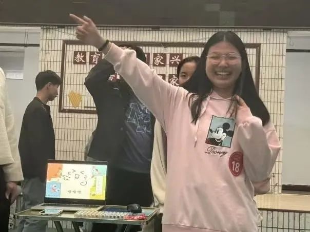 “嘴巴、手指不一样”要求在3秒倒计时之内,轮流说出一个数字,同时还要伸出手指示意。要求速度要快,手指示意和嘴巴说出的数字不能一样,否则即为淘汰。这个活动不仅考验学生的反应能力,更让大家感受到不管成功失败,都要微笑面对人生。