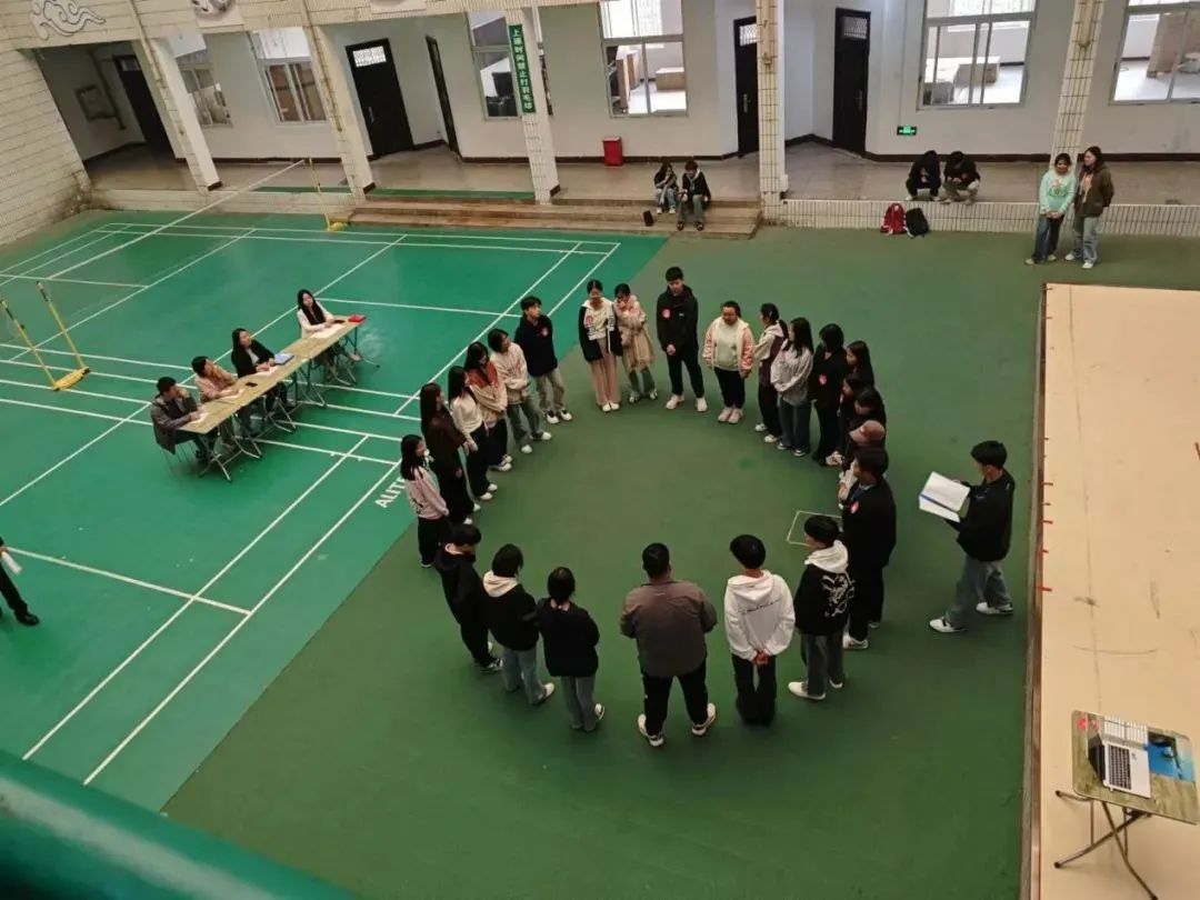在“玫瑰开花”的游戏中所有参与者围成一圈,由组织者发号施令“玫瑰开几瓣”,开几瓣则几位同学聚在一起。比赛开始后同学们以最快的速度和周围的人聚在一起,虽然聚集数量会有多有少,但他们可以快速熟悉起来,增强学生间的沟通交流。