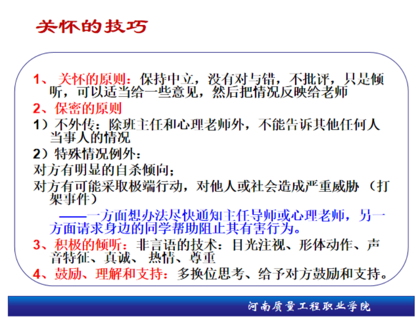在培训中增加知识储备、在班会中答疑解惑、在许愿卡中诉说美好,通过活动,加深自我探索,开发心理潜能,增强心理问题的敏感度和处理能力,提升专业素养和工作能力,以德育心。