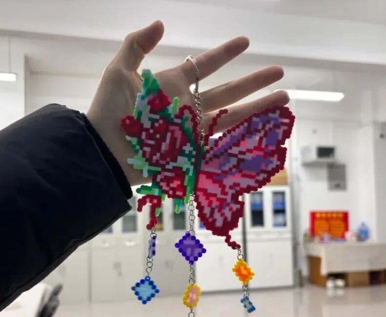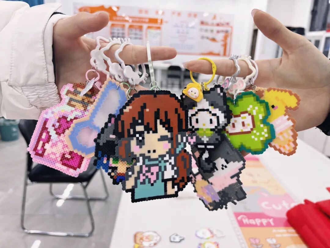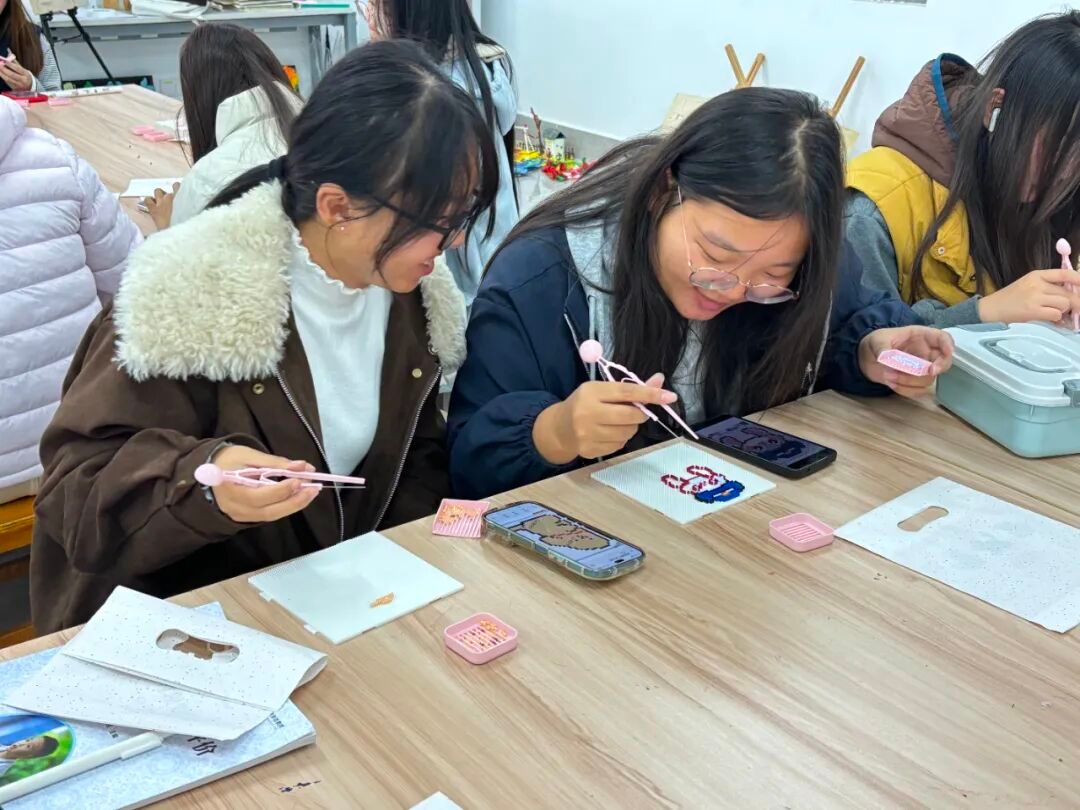 人文艺术学院二级心理辅导站全程护航这场充满暖意的拼豆创作之旅,从拼豆挑选时的耐心建议、图案拼接中的及时协助,到轮廓勾勒时的细致指导,每一步都尽显贴心。这份助力让大家轻松暂别日常压力,在专注摆弄豆粒的过程中享受创作的乐趣,不仅亲手完成了专属作品,更在点滴成就感中,切实感受到了手工带来的治愈力量。