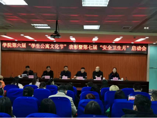 11月9日上午,第六届“学生公寓文化节”表彰暨第七届“安全卫生月”活动启动会在致知楼4201报告厅举行。学院党委副书记、工会主席姜葆亮、副院长田新现,各二级学院(部)、学工部相关人员与会,大会由学生处处长贾海科主持。