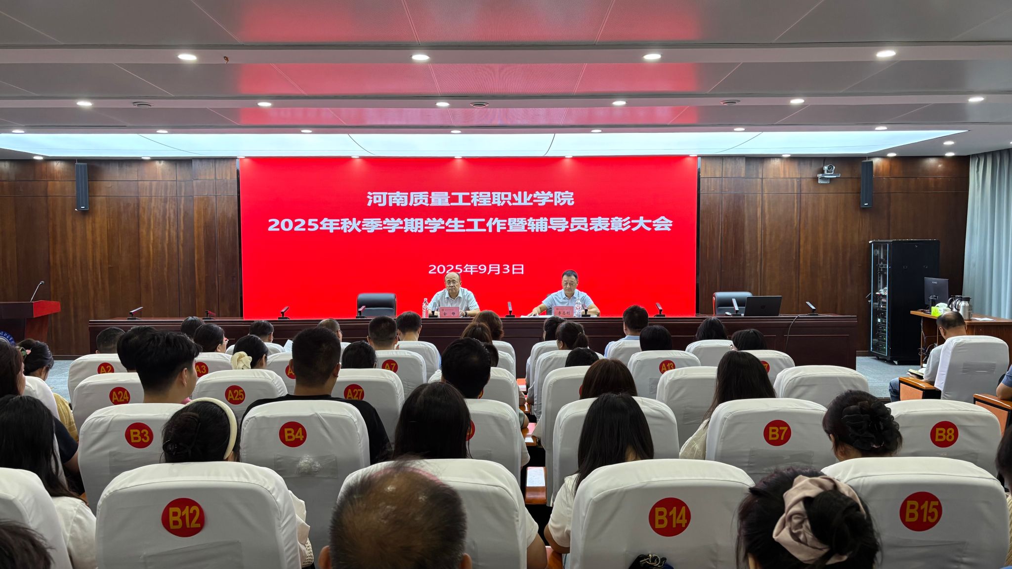 9月3日下午,学校在致知楼第二学术报告厅召开2025年秋季学期学生工作暨辅导员表彰大会。校党委委员、副校长金铮,各二级学院党总支书记、全体专兼职辅导员及学生处(学工部)全体人员参加会议。会议由学生处(学工部)处长(部长)李志刚主持。
