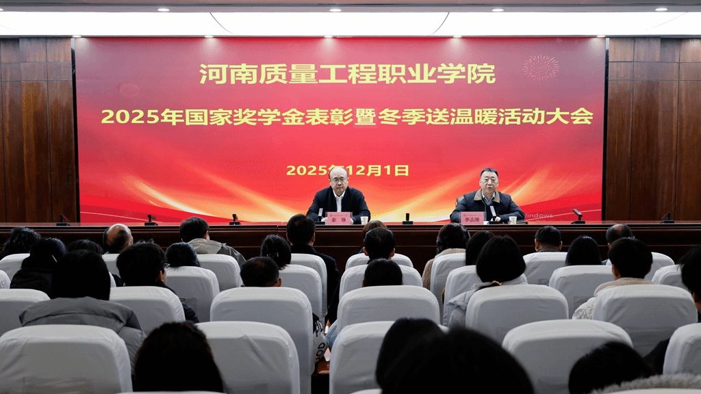 12月1日下午,我校在致知楼第二学术报告厅举办2025年度国家奖学金表彰暨冬季送温暖活动大会,旨在表彰品学兼优的学子,传递学校对困难学生的关怀。校党委委员、副校长金铮出席并讲话,各二级院(部)书记、副书记、学资专员,学生处全体工作人员及学生代表参加活动。学生处(学工部)处长(部长)李志刚主持大会。