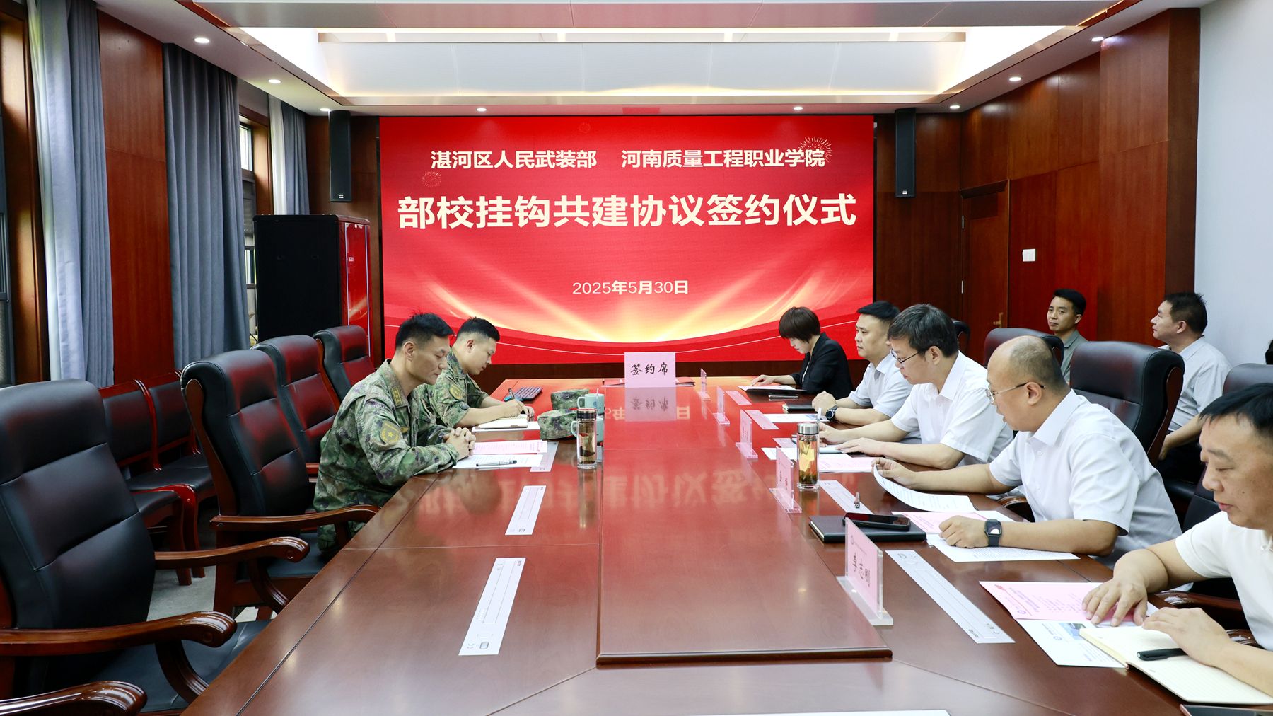 5月30上午,我校与湛河区人民武装部部校挂钩共建协议签约仪式在办公楼第一会议室举行。党委副书记、校长鲁书喜,湛河区人民武装部上校部长马斌出席会议并分别致辞。副校长金铮主持仪式。