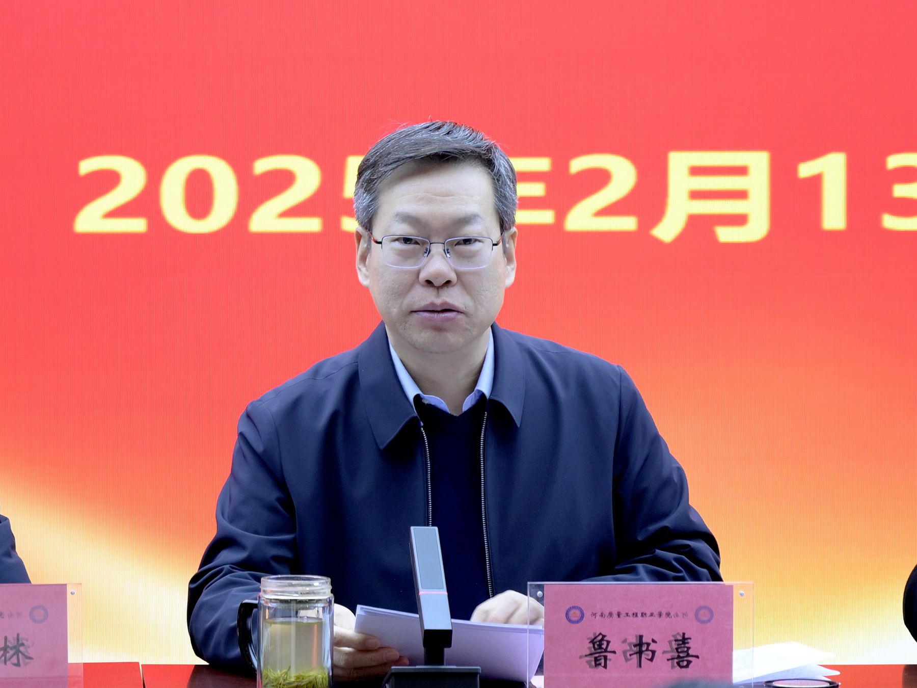 鲁书喜从七个方面对2025年重点工作进行了部署。一是坚持党的全面领导,以高质量党建引领事业高质量发展。要扎实做好党的二十届三中全会精神学习宣传贯彻,建立健全“第一议题”学习资料库,坚持正确舆论引导、强化网络文化建设,构建协同联动的意识形态工作格局;积极推进“三级联创”和“双带头人”教师党支部书记工作室创建工作,分层分类开展中层干部、党务专干和年轻干部的教育培训工作;丰富共青团活动载体,创新党员先锋队培养模式,积极组建“业余团校”和学习活动小组;不断拓展国家级、省级主流媒体合作广度和深度,打造“几何宣传矩阵”,全方位、立体化呈现学院发展成效。二是不断强化内涵建设,持续提高办学水平。要科学谋划,深学细研,打造一批高水平标志性成果,做强优势特色,突破短板弱项,积极申报省级高水平专业群,全力推进第二期“双高计划”创建。要严格对照指标体系,认真开展自评,全力做好省高职学校教育教学发展性评估和河南省高等学历继续教育教学评估准备工作。要认真做好学院“十四五”期间总结评估,分析研判“十五五”期间新形势、新机遇和新挑战,高标准、高水平完成学院“十五五”发展规划研制工作。要持续开展规章制度“废改立”工作。三是聚焦“五金”建设,增强教育教学实效。要狠抓专业建设。依据实际申报新专业、停招与产业链对接不紧密专业,推进传统专业升级改造,在加强“143”专业群建设基础上,布局应用化工技术、人工智能技术应用等专业群建设。要狠抓课程建设,统筹推进课程思政和思政课程高质量建设,调整优化课程目标、重构课程结构、优化教学设计、更新课程内容,建设精品在线开放课程和课程思政示范课程。要狠抓师资建设。打造“结构合理、技艺精湛”的“双师型”教师队伍,设立产业教授特聘岗、技能大师工作室等,邀请国内职业教育知名专家为我院教师作新技术应用能力培训,建成院级教师教学创新团队、培育院级教学名师、争创省级教学名师及骨干教师。要狠抓基地建设。打造“场景真实、开放融合”的金基地和职业教育示范性虚拟仿真实训基地,扎实做好相关示范基地、中心项目验收准备工作,继续拓展学生实习基地。要狠抓教材建设。秉持“产学研用”融合理念,做好教材建设规划,实现教材内容与时俱进;组建教材开发团队,开发适用于模块化教学、通俗易懂的“活页式”、立体化教材;积极培育职业教育国际化数字教材。四是坚持开放办学,打造合作共赢办学模式。要深化校企协同育人。主动走访调研,对接企业需求、深挖合作潜力、寻求合作契机,开展形式多样的深度合作,建设2-3个产业学院。要拓展校际交流合作。与省内外高校建立战略合作关系,深化与汝州职业技术学院的战略合作,积极与平顶山技师学院联合培养新能源汽车、数控加工等专业的专科层次学生。要持续推进“职教出海”。开展与马来西亚玻璃市大学合作专业招生,利用与河南省安装集团有限责任公司马来西亚分公司建立的高技能人才培训基地、智能建造产教融合实践中心,开展员工培训、学历教育等服务;加强与泰国有关大学沟通和联系,力争获批1-2个专业的中外合作办学项目。五是立足特色优势,打造教育服务特色品牌。积极推进传统质量文化进专业课,打造学院思政教育新品牌;提高“奖、助、贷、勤、补、免”六位一体综合资助能力,推动“资助有力度,关怀有温度”学生资助工作特色品牌建设。面向中职骨干教师、事业单位工勤人员、高素质农民等群体开展多层次、多形式的社会培训,打造具有较强社会影响力的职业培训服务品牌。要打造质量技术服务行业品牌。加强与全国市场监管行指委的联系,努力将标准化技术打造成特色专业;加快推进全国质量技术服务行业产教融合共同体建设,筹建平顶山市质量科学研究中心,组建平顶山市质量技术产教融合联盟。六是以成果为导向,探索构建绩效考核评价体系。要制定二级单位绩效考核评价办法,建立常态化督办机制,彻底打破“干多干少一个样”的思维,营造“人人讲绩效、事事重绩效”的浓厚干事氛围,形成“千帆竞发、百舸争流”的良好局面。七是压紧压实责任,全力维护好校园安全稳定。严格落实意识形态工作责任制,不断完善风险预判和应对处置机制,持续加强隐患排查与整治,深入开展各类安全教育,加强应急演练,提升师生安全素养;加快完成校园安全设备升级改造、安装等项目,健全矛盾纠纷分级排查调处机制,密切校地、校警合作,加强校园周边环境的综合治理,全力保障师生身体健康和生命安全。