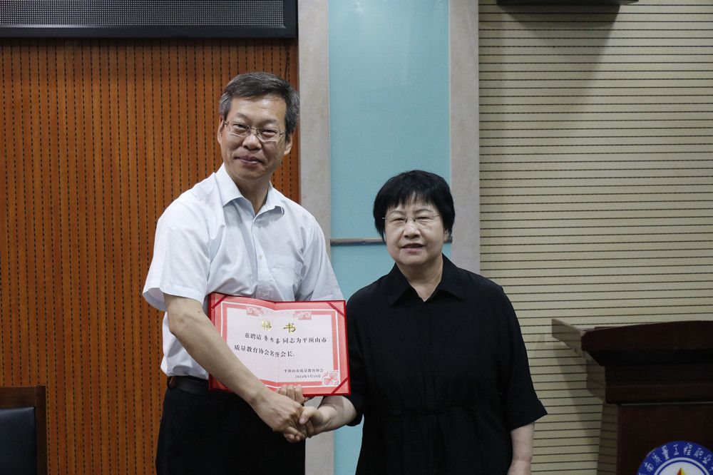 大会听取了平顶山市质量教育协会筹备工作情况,表决通过了平顶山市质量教育协会章程、选举办法及财务管理办法,宣读了批复文件,选举产生平顶山市质量教育协会第一届理事会成员和监事会成员,经过平顶山市质量教育协会第一届第一次理事会选举支喜梅当选平顶山市质量教育协会会长,张先顺、郑淑晖、李溟昊当选副会长,田凯当选协会秘书长;经过平顶山市质量教育协会第一届第一次监事会选举邱红标当选平顶山市质量教育协会监事长。新当选的协会会长支喜梅为名誉会长鲁书喜、名誉副会长张留成颁发聘书。