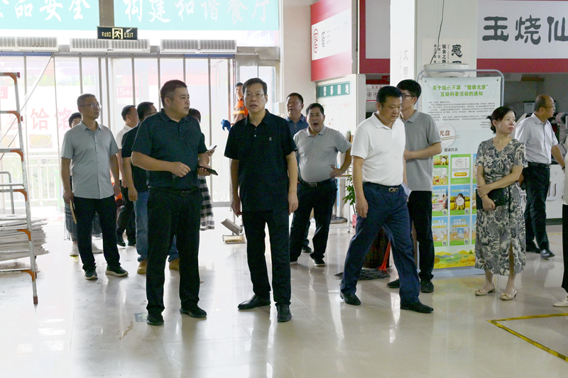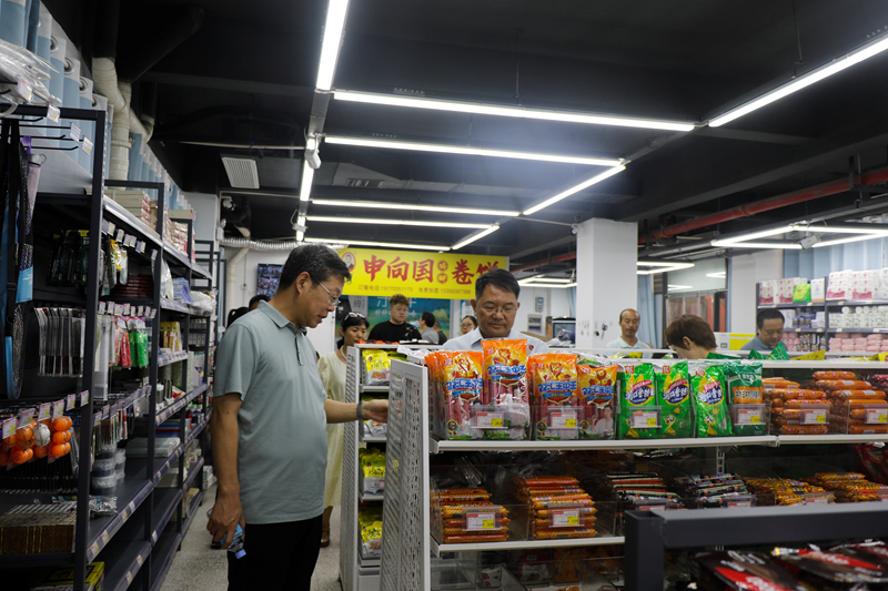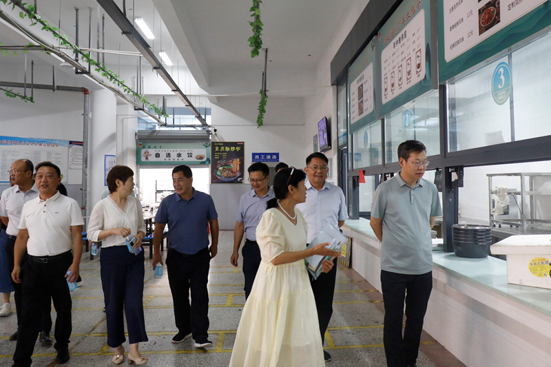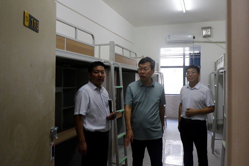 在示范区校区,鲁书喜一行详细了解计算机技术学院秋季学期开学各项准备情况,实地查看了食堂、宿舍、校园超市、教室等区域,与一中新区学校后勤负责人就宿舍条件改善、活动场所修缮等工作进行了沟通交流。
