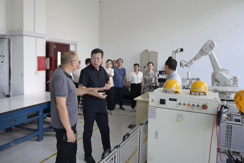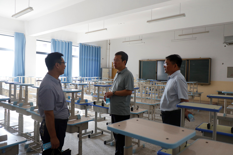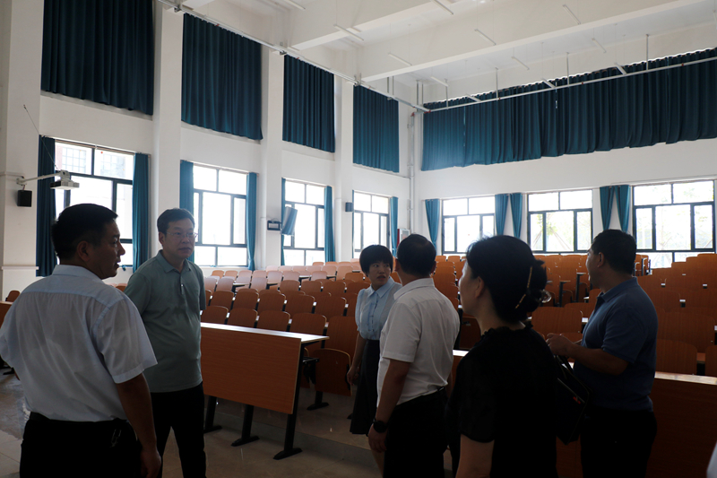 在舞钢校区,鲁书喜一行实地察看了信息工程学院、公共管理学院、人文艺术学院的教室、实训室等教学场所开学前准备情况,详细了解了学生住宿、餐饮等后勤服务保障准备情况,就教职工公寓、学生宿舍在建项目的交付工作与中建八局进行了对接。