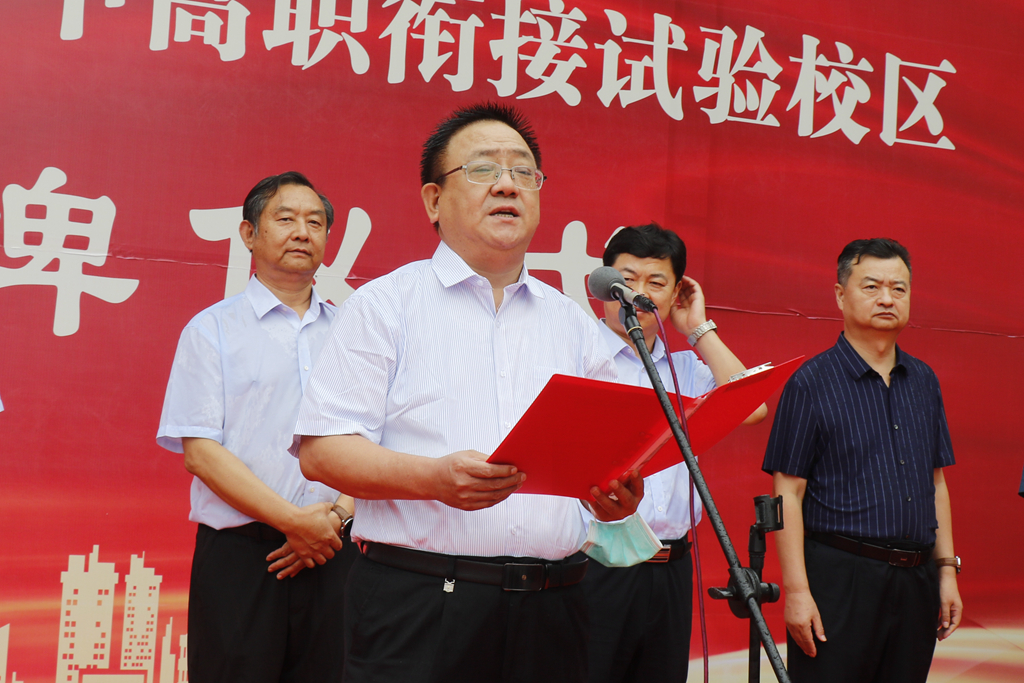 郑海金和刘文祥共同为中高职衔接实验校区进行揭牌。徐宗华、朱志骞分别代表双方致辞。