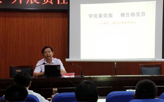 2017年9月19日下午4点半,院办党支部和经济与管理系党总支在致知楼第二学术报告厅开展党员集中学习教育,院党委副书记、院长郑海金为全体党员讲了一次以《学党规党章,做合格党员》为主题的党课。