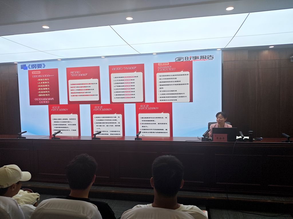 席会平从坚实基础、战略支撑,蓬勃发展、优质均衡和深化改革、系统推进三个方面讲述了建设教育强国是一项复杂的系统工程,需要我们紧紧围绕立德树人这个根本任务,着眼于培养德智体美劳全面发展的社会主义建设者和接班人,坚持社会主义办学方向,培养人才和满足社会需要。