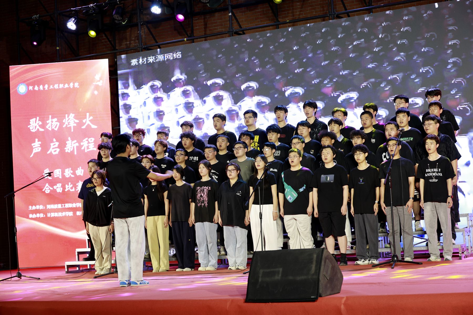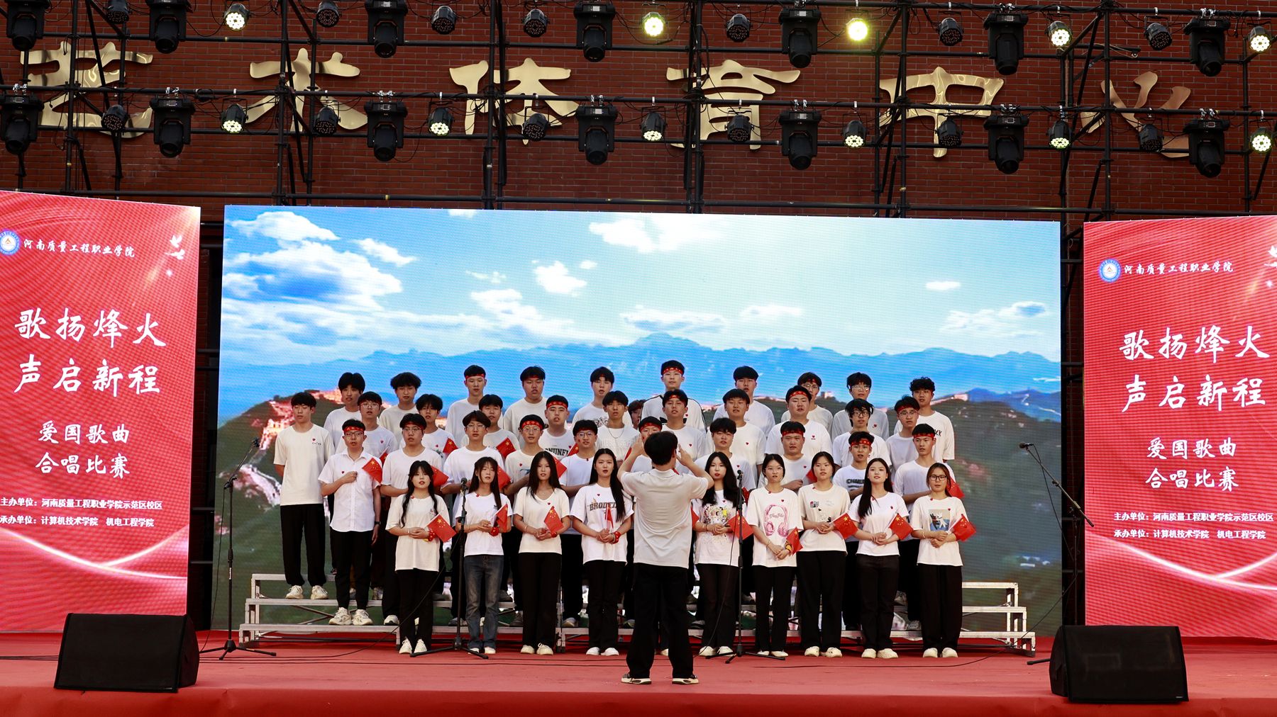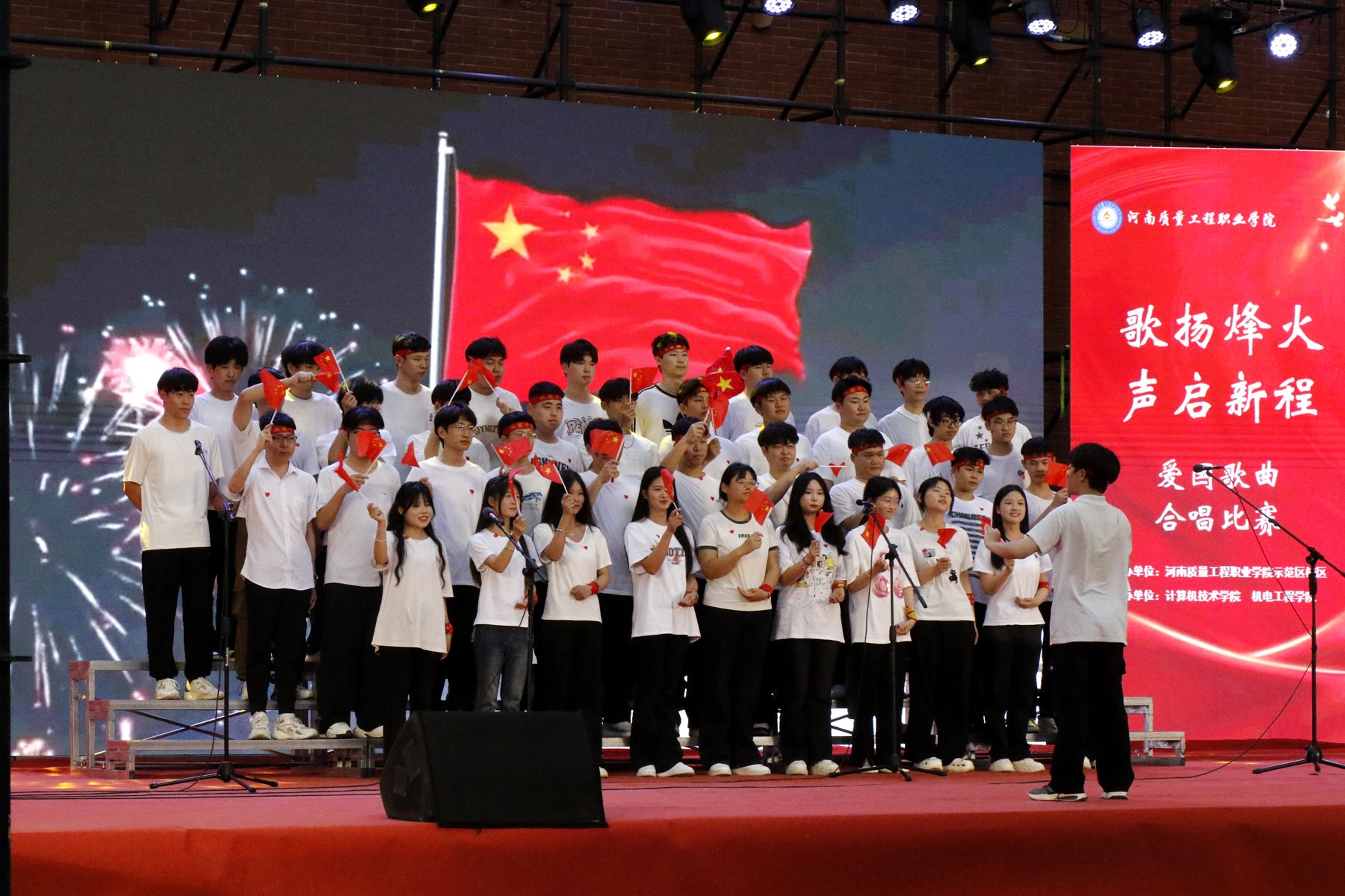 2025年是中国人民抗日战争暨世界反法西斯战争胜利80周年。为传承红色基因,弘扬革命精神,丰富校园文化生活,5月20日晚,我院示范区校区举办“歌扬烽火 声启新程”爱国歌曲合唱比赛和“青春向党 梦想飞扬”文艺晚会。院领导张林、席会平、张虽栓出席并观看节目,党委办公室、党委组织部、党委宣传部、纪委、机关党委、学院办公室、科研外事处、质量科学研究中心、大学生心理健康教育中心、机电工程学院、经济与管理学院、计算机技术学院有关负责同志和教师代表,以及示范区校区全体师生共同参加活动。