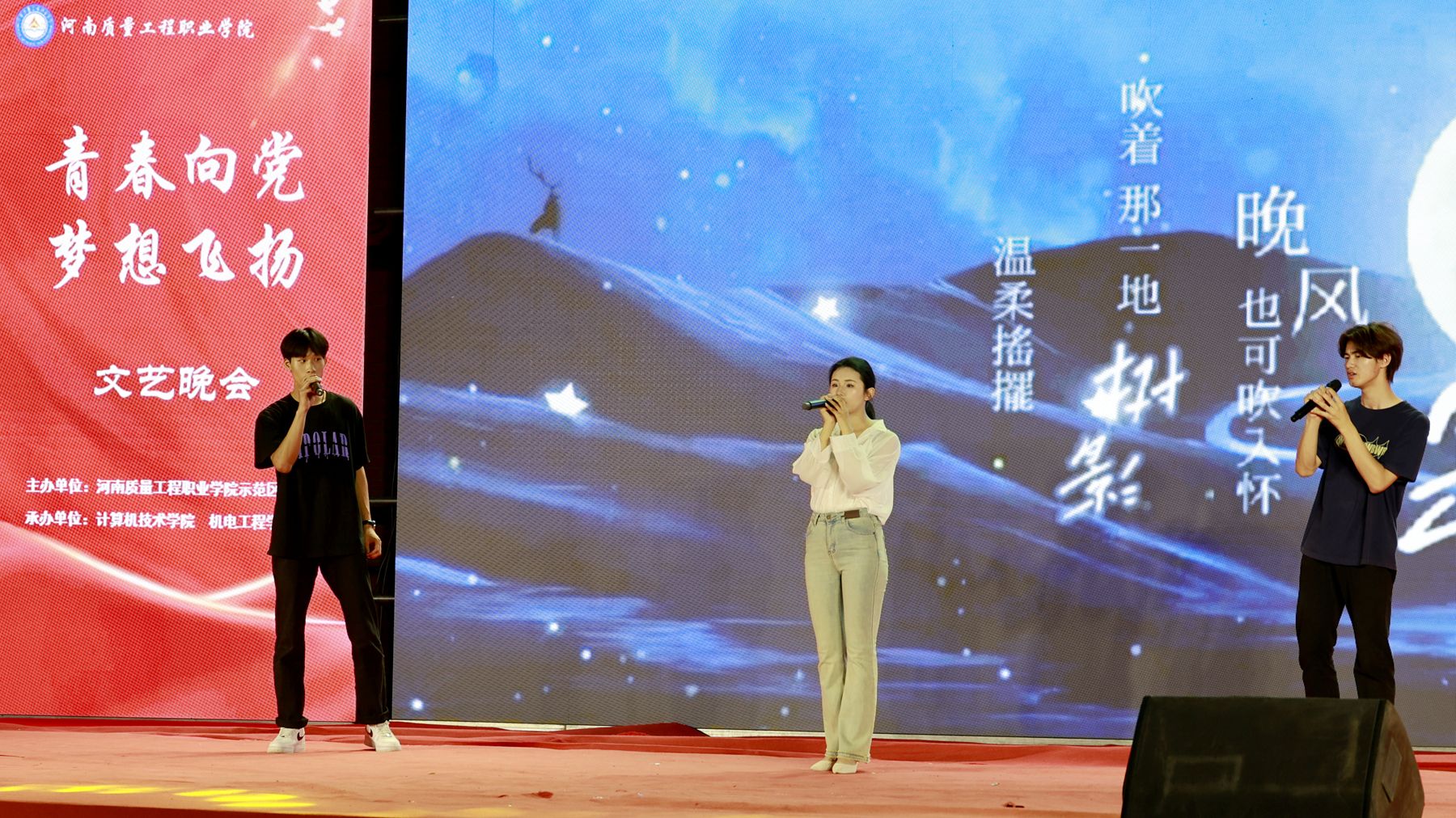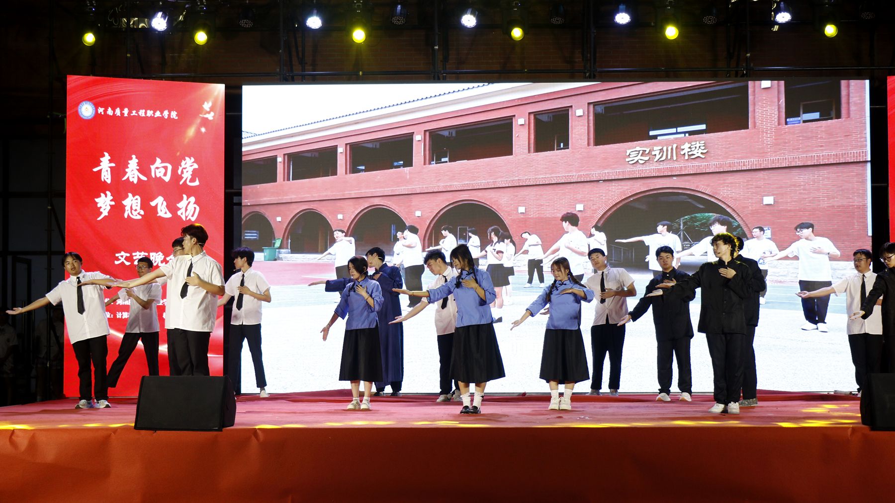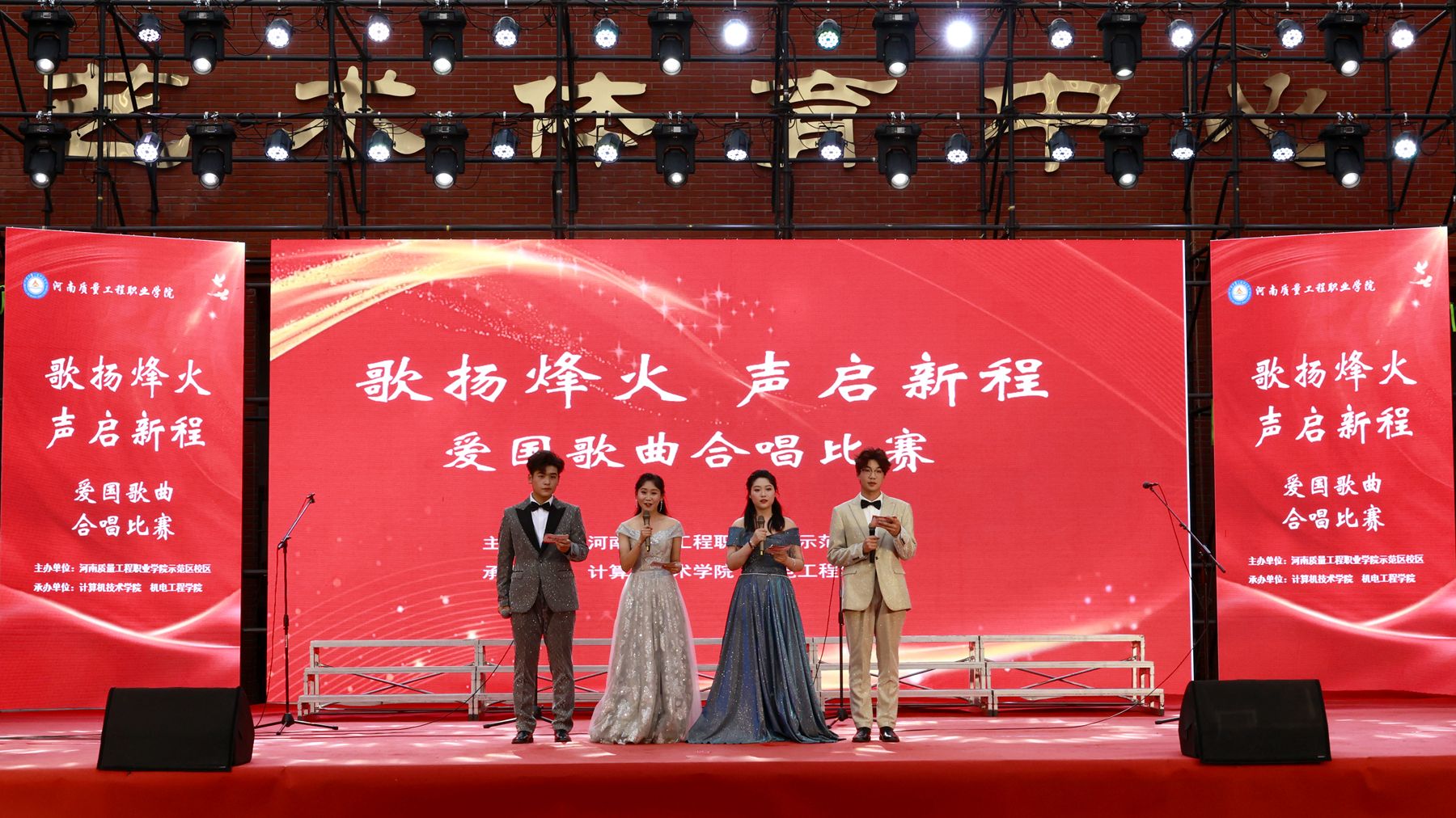 2025年是中国人民抗日战争暨世界反法西斯战争胜利80周年。为传承红色基因,弘扬革命精神,丰富校园文化生活,5月20日晚,我院示范区校区举办“歌扬烽火 声启新程”爱国歌曲合唱比赛和“青春向党 梦想飞扬”文艺晚会。院领导张林、席会平、张虽栓出席并观看节目,党委办公室、党委组织部、党委宣传部、纪委、机关党委、学院办公室、科研外事处、质量科学研究中心、大学生心理健康教育中心、机电工程学院、经济与管理学院、计算机技术学院有关负责同志和教师代表,以及示范区校区全体师生共同参加活动。