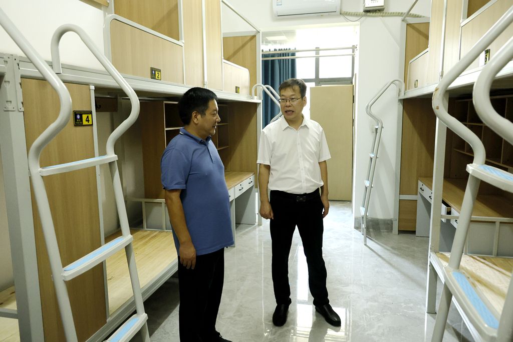 鲁书喜一行先后到学生食堂、学生宿舍、教学楼、实验室及二级院部办公场所等多个关键区域查看,对暑期重点工程建设成果、二级学院搬迁、校园安全保障、卫生清洁及开学准备工作进行全面细致的检查了解。每到一处都详细询问情况,对发现的问题现场提出整改意见,并要求相关部门务必在开学前全部整改到位。